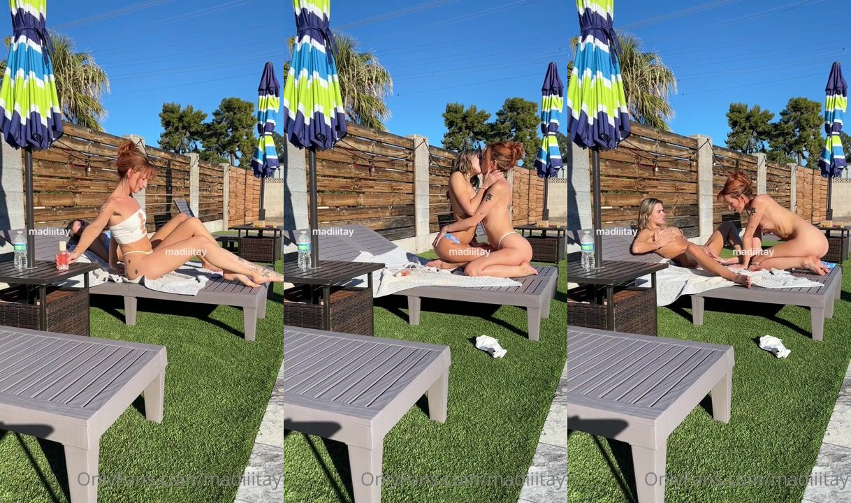 Madiiitay Sexy Blonde Nude Outdoor Lesbian Fucking In Poolside