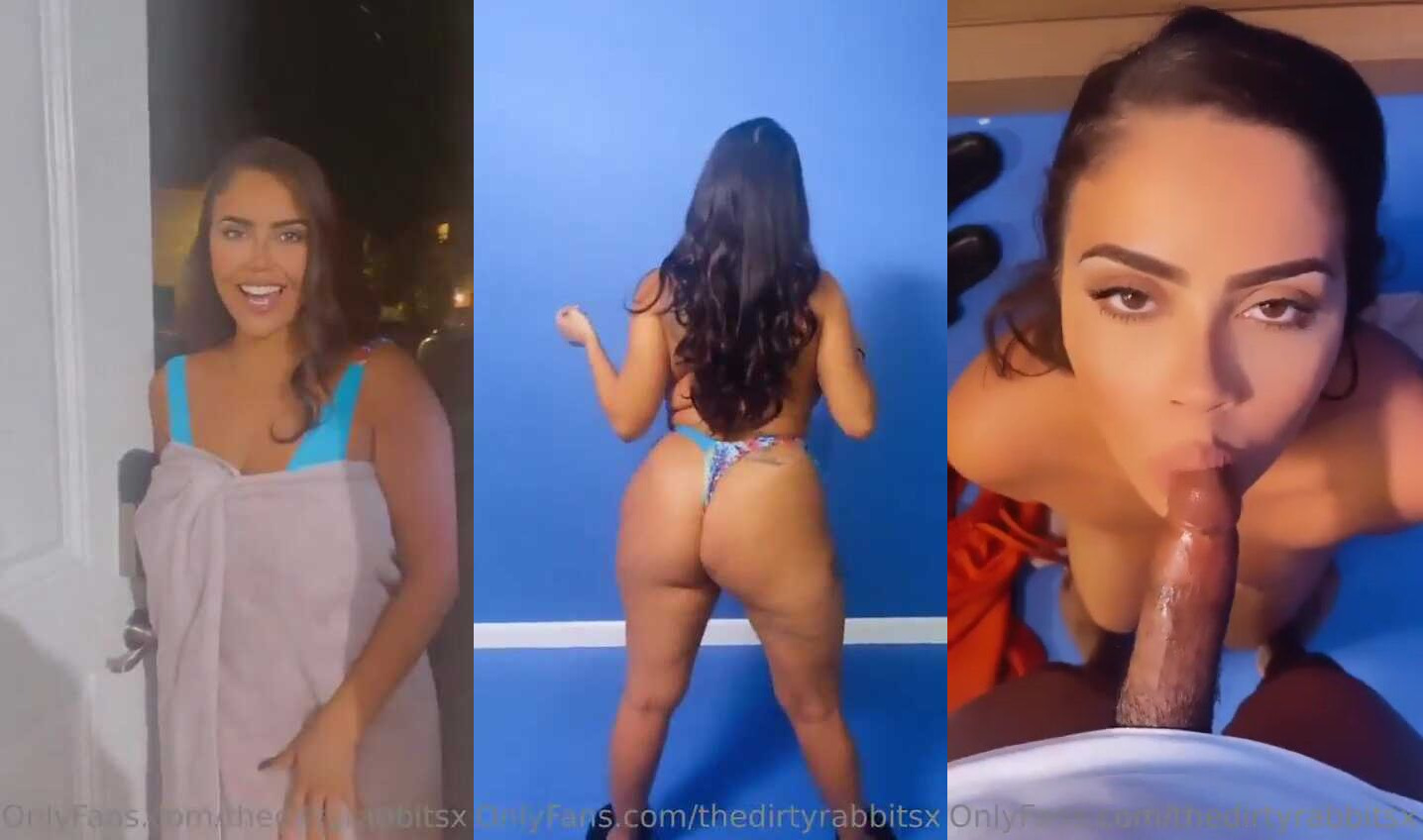 Watch as @thedirtyrabbitsx teases in lingerie before stripping down and giving a sloppy blowjob in this steamy video. Her curves and seductive moves will leave you craving more.