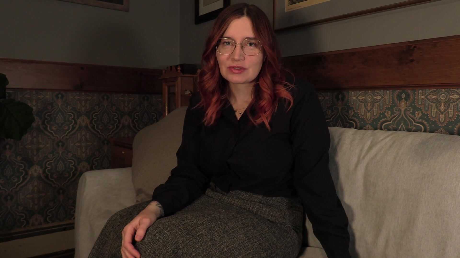 Bettie Bondage Curvy Goddess Strips And Play With Glasses On In Black Lingerie Video