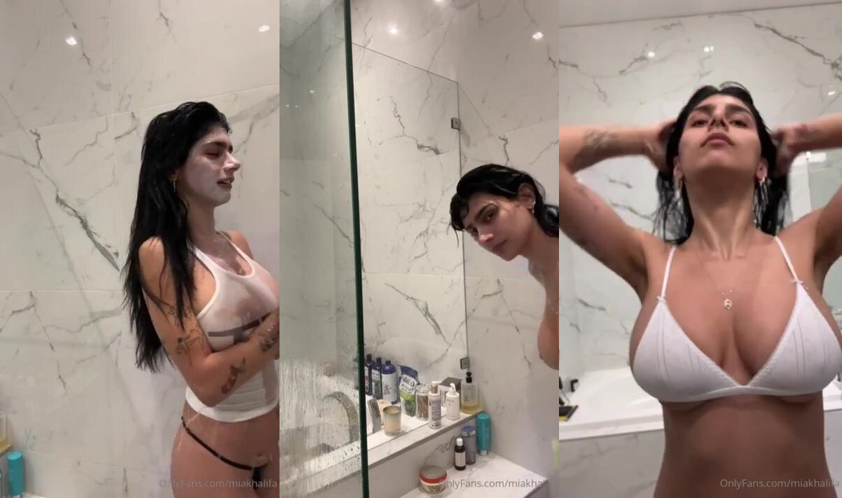 Catch MiaKhalifa in this steamy OnlyFans video as she teases in wet white lingerie during a shower scene that's pure fire.