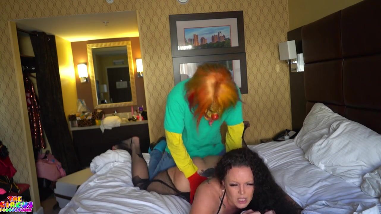 Curvy pornstar GibbyTheClown rocking a fishnet bodystocking gets fucked in a steamy hotel room fuck video.