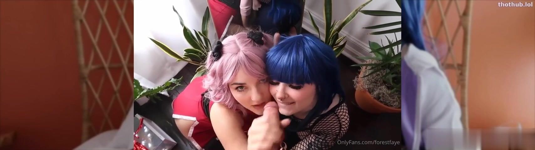 NaomiH666 and ForestFaye get down and dirty in a kinky cosplay threesome blowbang video - Teasing each other in their sexy costumes