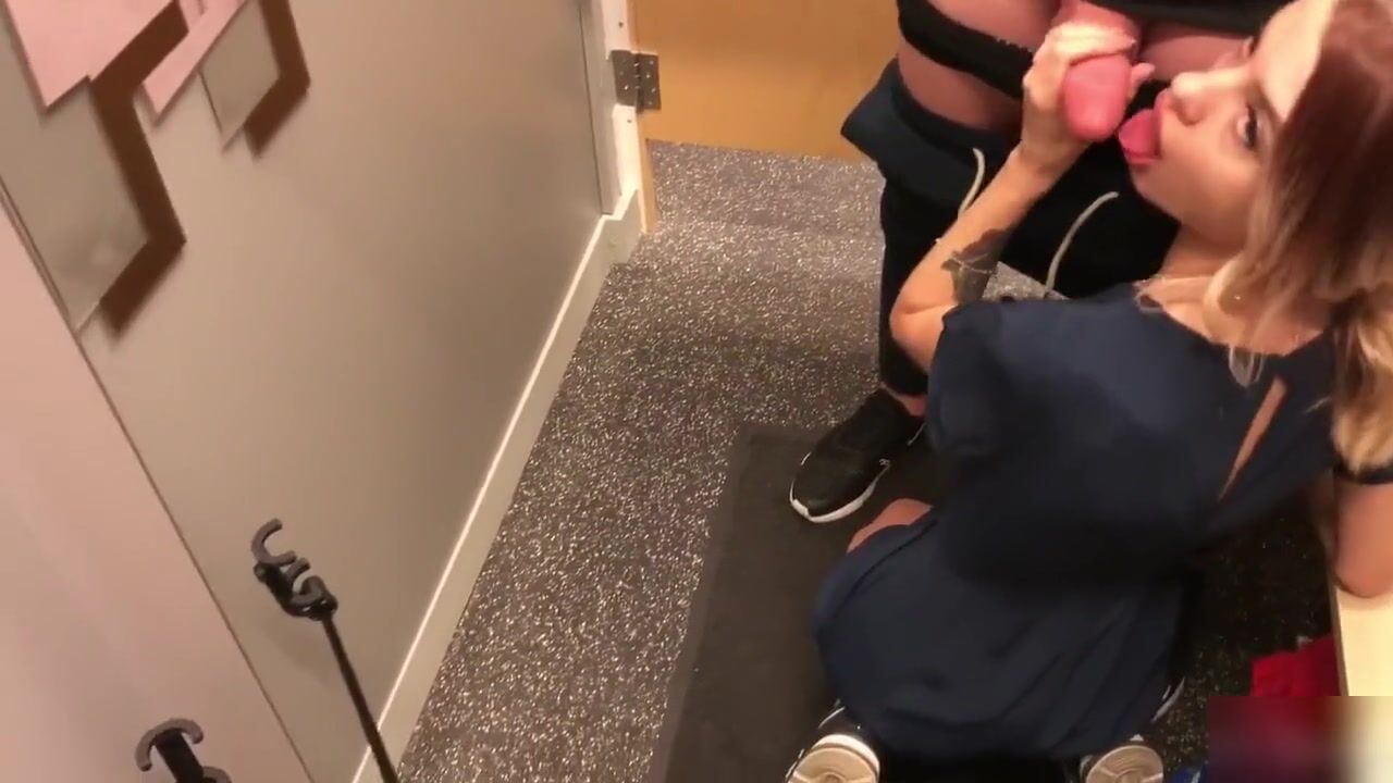 Amateur blowjob in a girlfriend’s dressing room with Botox lips